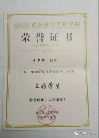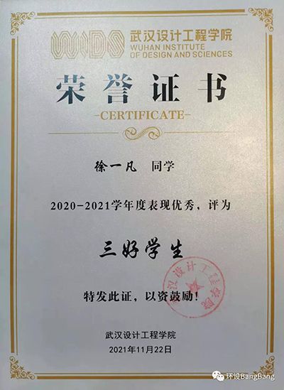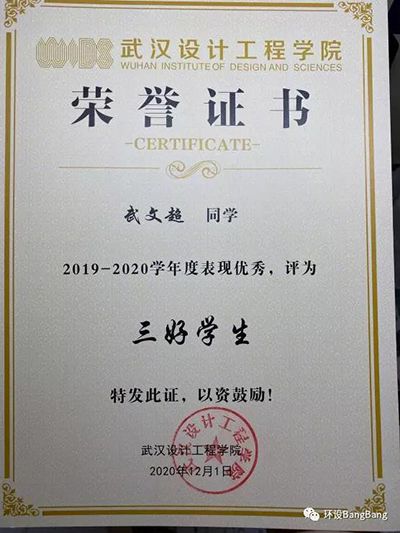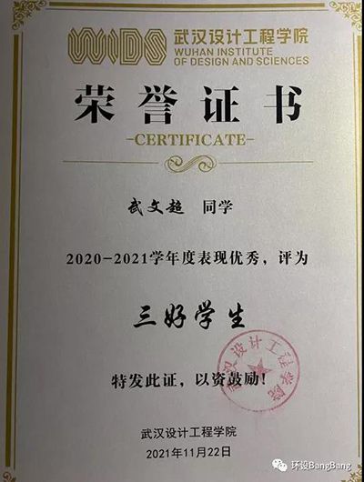 2020-2021学年度武文超同学获“三好学生”荣誉称号。