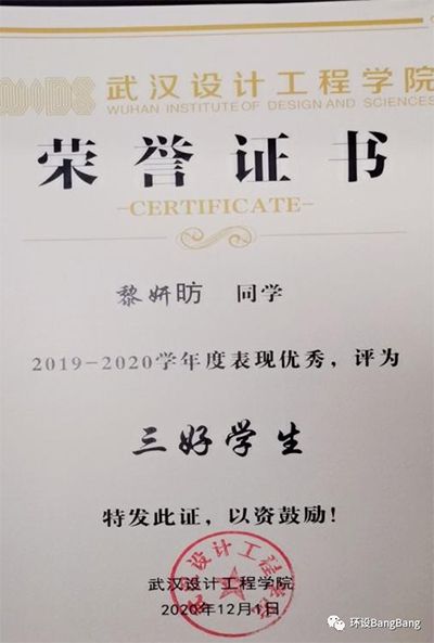 2019-2020学年度黎妍昉同学获“三好学生”荣誉称号。