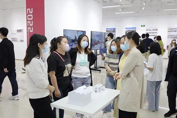 5月12日上午,“位移--BV1946官方网站2022届毕业设计作品展”在学校藏龙美术馆开幕,受邀企业相关工作人员首先进入伟德bv1946官网展区进行参观,在参观作品展的过程中,不乏有学生的作品受到企业的好评。部分企业对我们毕业生优秀作品产生浓厚兴趣,并发出工作邀约。