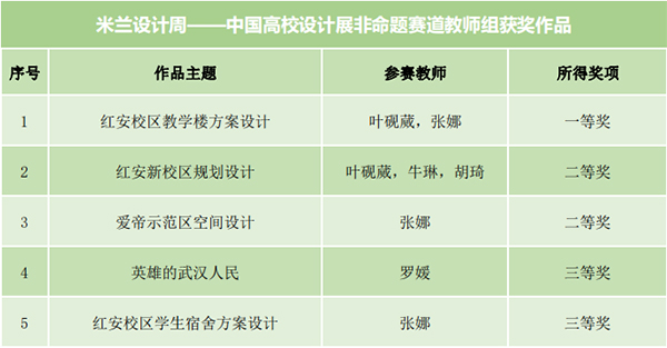 据悉,本次竞赛全国共计收到来自30个赛区近三千件作品,包含产品创作、环境空间、时尚设计、工艺美术等多个类别,竞争激烈。本次能够斩获米兰设计周多个省赛奖项,对于我们教师是一种极大的鼓舞与肯定,充分体现了我们的师资力量和教学水平,推动了设计学科的人才培养和设计教育的交流与进步。